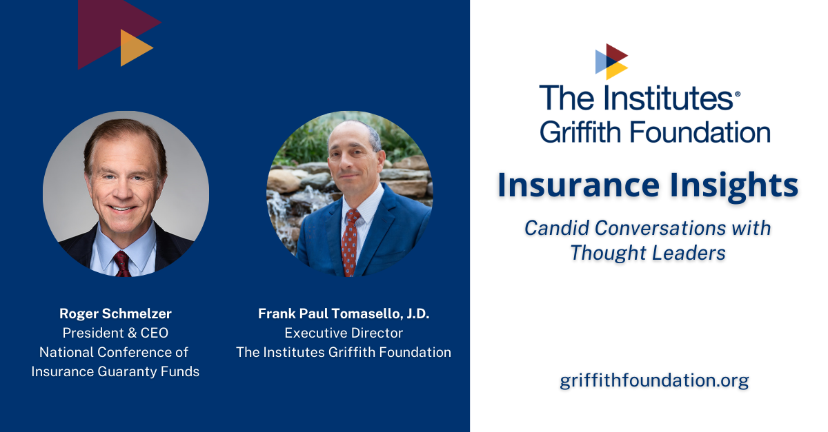 In this installment of Insurance Insights, Roger Schmelzer, President & CEO of the National Conference of Insurance Guaranty Funds, joins Frank Paul Tomasello, Executive Director of The Institutes Griffith Foundation, to explore: how guaranty funds originated; why they matter; and their evolving role in today’s insurance landscape. We invite you to view the discussion using the link below.